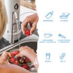 Usos: Agua para beber, preparar comidas, jugos, licuados, batidos, hielo, agua para biberones. Limpiar frutas y verduras. Activar legumbres. Alimentar mascotas.