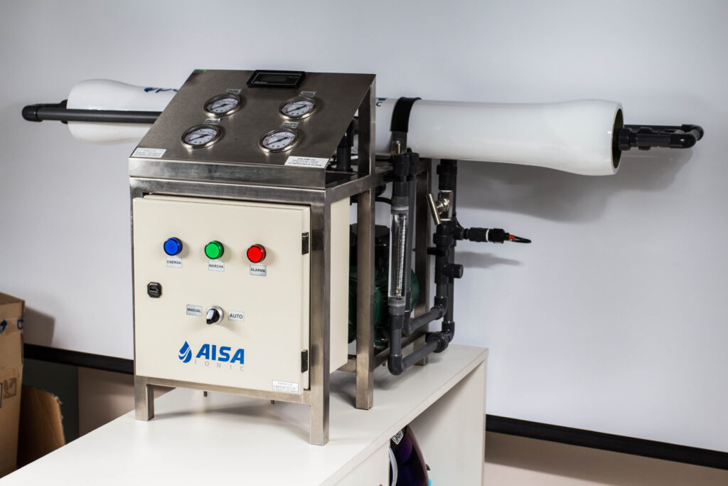 Con la experiencia de muchos años en el diseño y fabricación de sistemas de ósmosis inversa a toda escala, aprendimos que el espacio requerido muchas veces es un factor determinante y clave para la posiblidad de implementar una solución tan importante como la de transformar agua salobre en agua de ósmosis inversa. Por eso esta estructura 100% de acero inoxidable, utilizar materiales anticorrosivos, en un sistema completo robusto no sería nada sin que el concepto de diseño sea el de un sistema fácil de instalar, fácil de entender y usar y fácil de mantener.