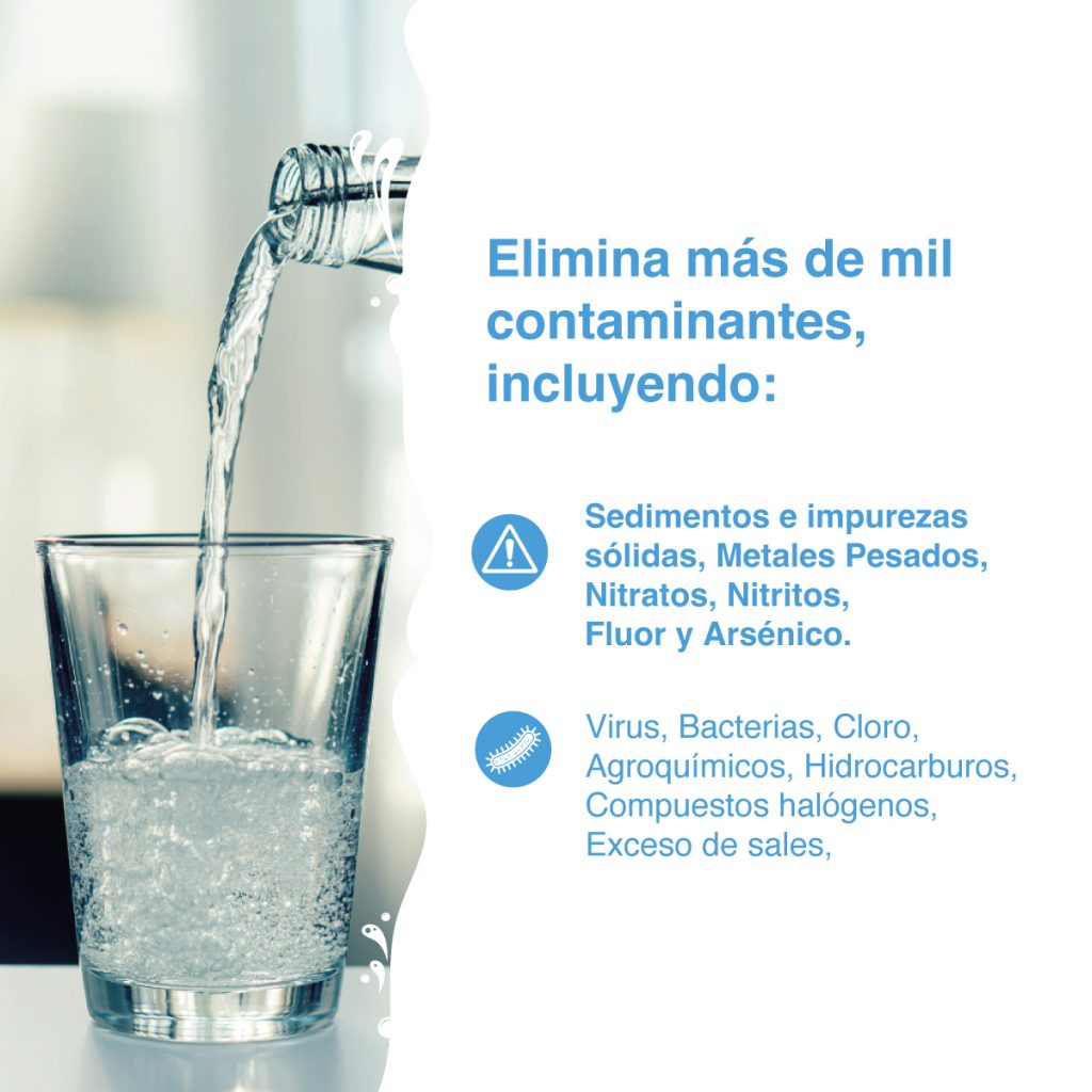En tiempo promedio se realiza el reemplazo del Pack 1 Space una vez por año recambiando estas dos fases de tratamiento compuestas por microfiltración que elimina impurezas, adsorción que elimina compuestos orgánicos, compuestos halogenados y sustancias químicas como Cloro, cloraminas, THM´s, agroquímicos, restos de hidrocarburos.