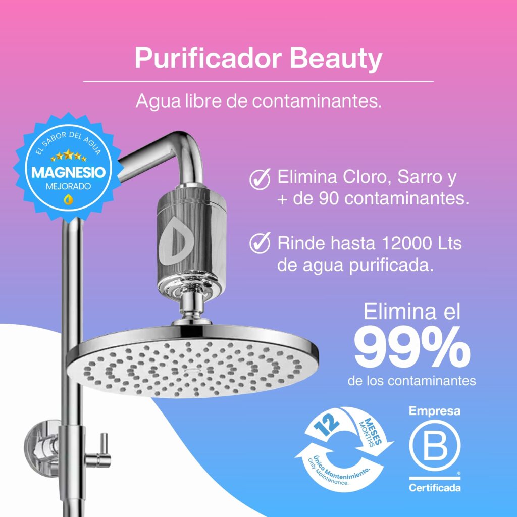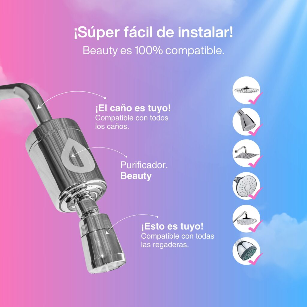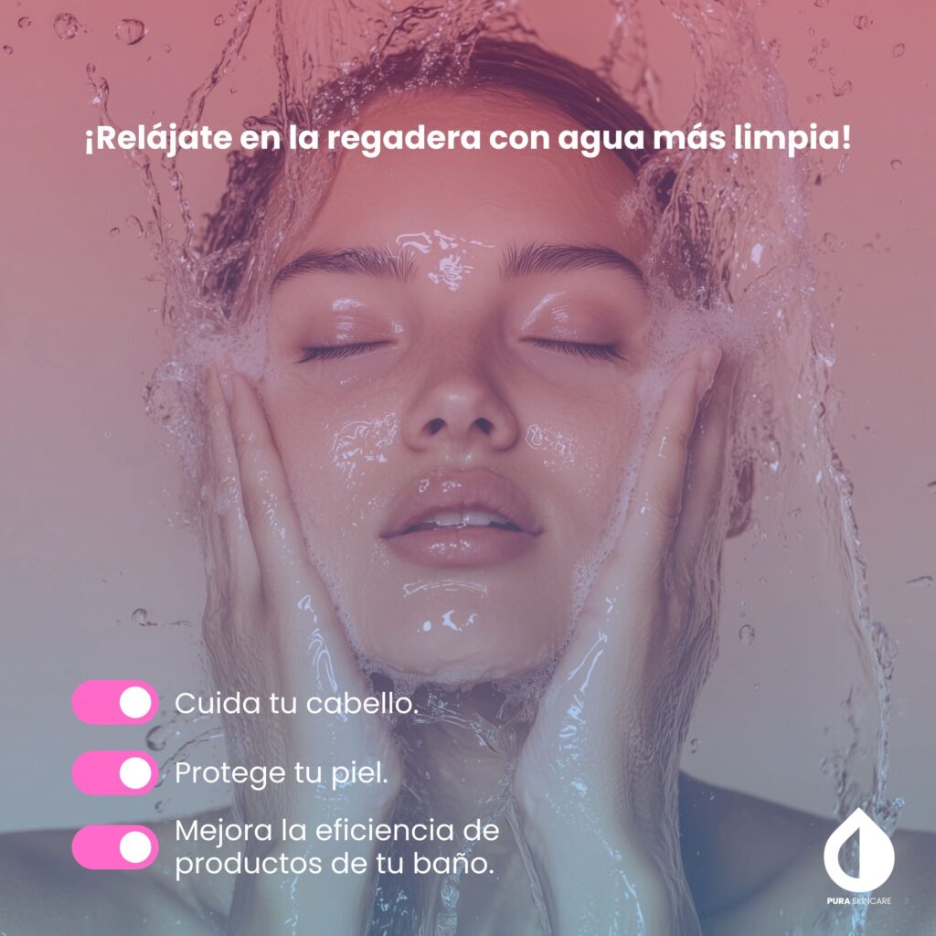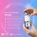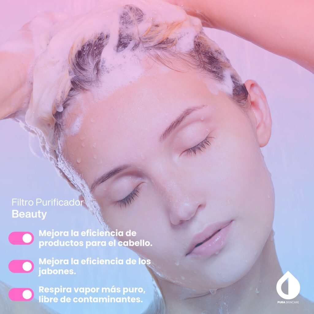 Filtración inmediata con Pura Beauty. De alto caudal, elimina Cloro, sustancias químicas, sarro, prolonga el efecto de tratamientos de cabello, protege la tinta, piel suave protegida con agua purificada, optimiza la efectividad de jabones, shampoo, cremas, tratamientos de salud y belleza, optimiza al máximo tu experiencia de cuidado de la piel y el cabello.