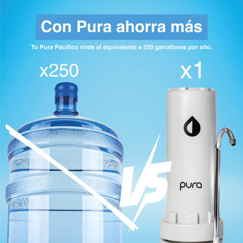 PURA Pacífico sobretarja es el más vendido en Mexico para cocina. Un purificador premium de alto rendimiento que se conecta fácil y seguro y transforma el agua de la red en agua purificada con Magnesio agregado y un sabor notablemente superior. Con rendimiento líder de hasta 40,000 litros por Núcleo original y recambio promedio cada 3 años, es la solución principal para beber, cocinar, mate, café, té, jugos e infusiones.
