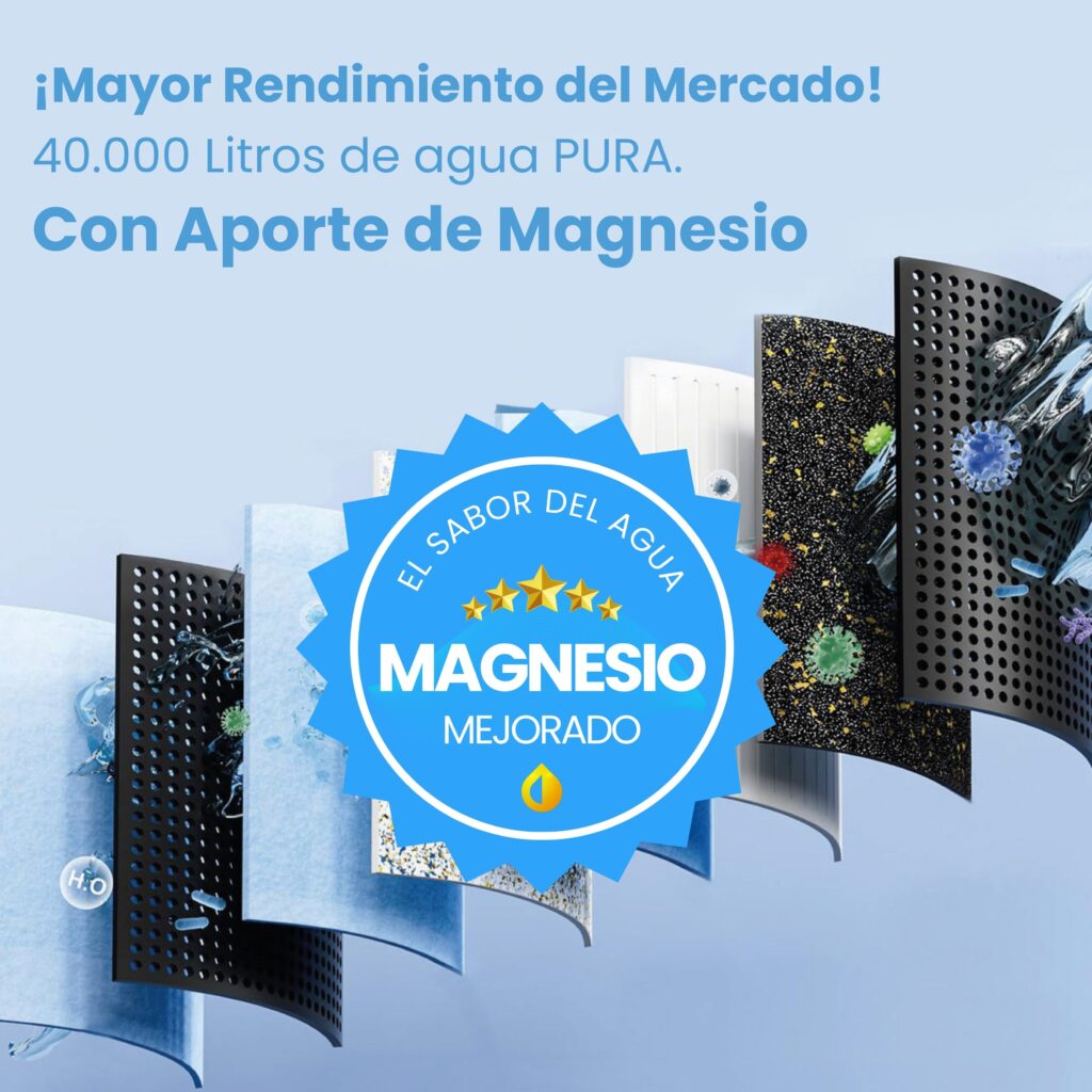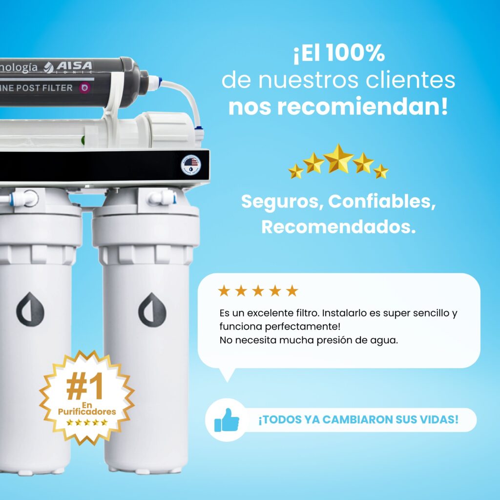 Filtro Purificador de Agua 5 etapas, con tecnología exclusiva que elimina Arsénico, incorpora Ultrafiltración, apto gastronomía, da cumplimiento a NOM, conexión bajo tarja, no requiere conexión eléctrica, agua premium, alcalina, agrega magnesio, equivalente al uso de 2mil garrafones grandes. Mucho mejor, más segura y fácil que el garrafón.