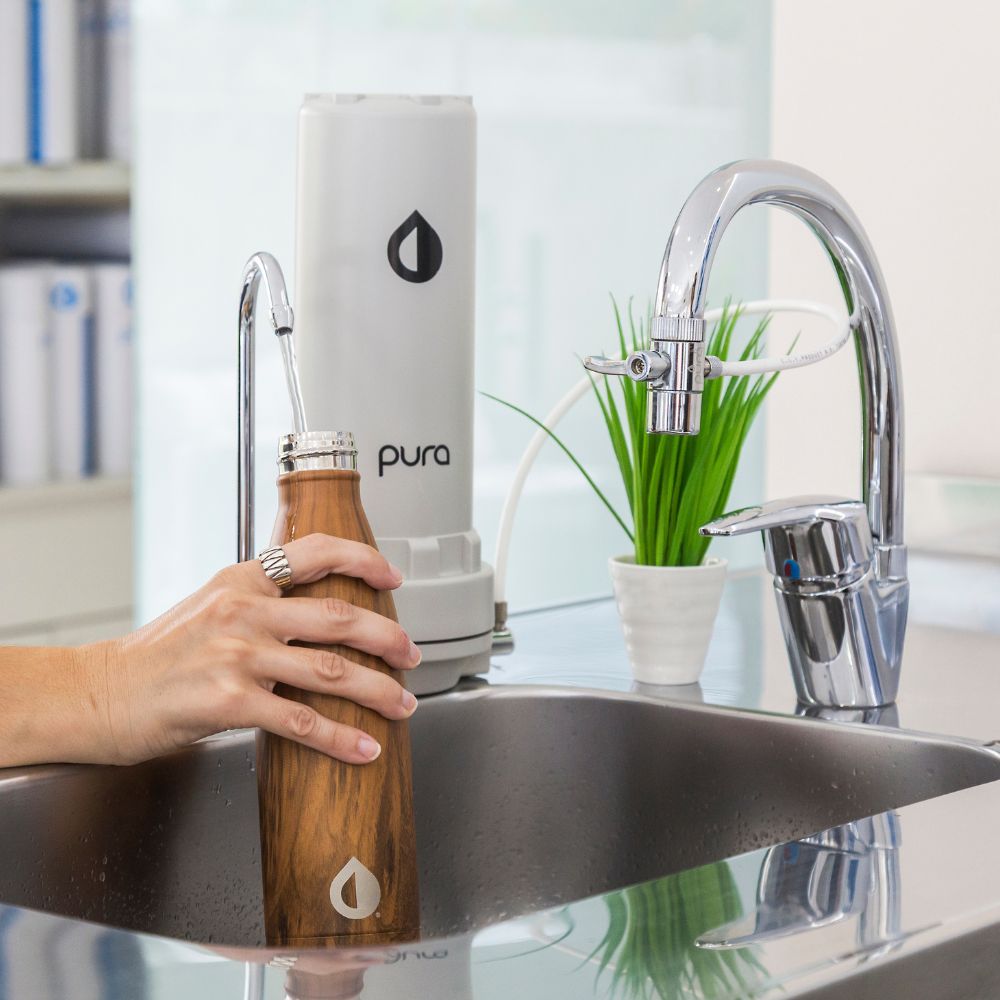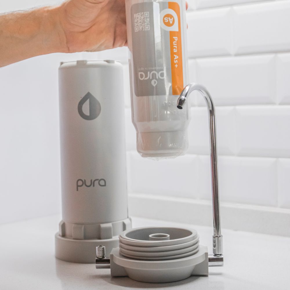 Purificador de agua para colocar en minutos sobre la tarja de la cocina, elimina arsénico, metales pesados y otras impurezas del agua.