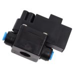 Switch de alta presión con conexión para manguera de 1/4″ entrada y salida. Es el switch que comanda el inicio y parada del sistema eléctrico de la ósmosis inversa. Incluye 2 puertos de conectores eléctricos y 2 conexiones a manguera de 1/4″.